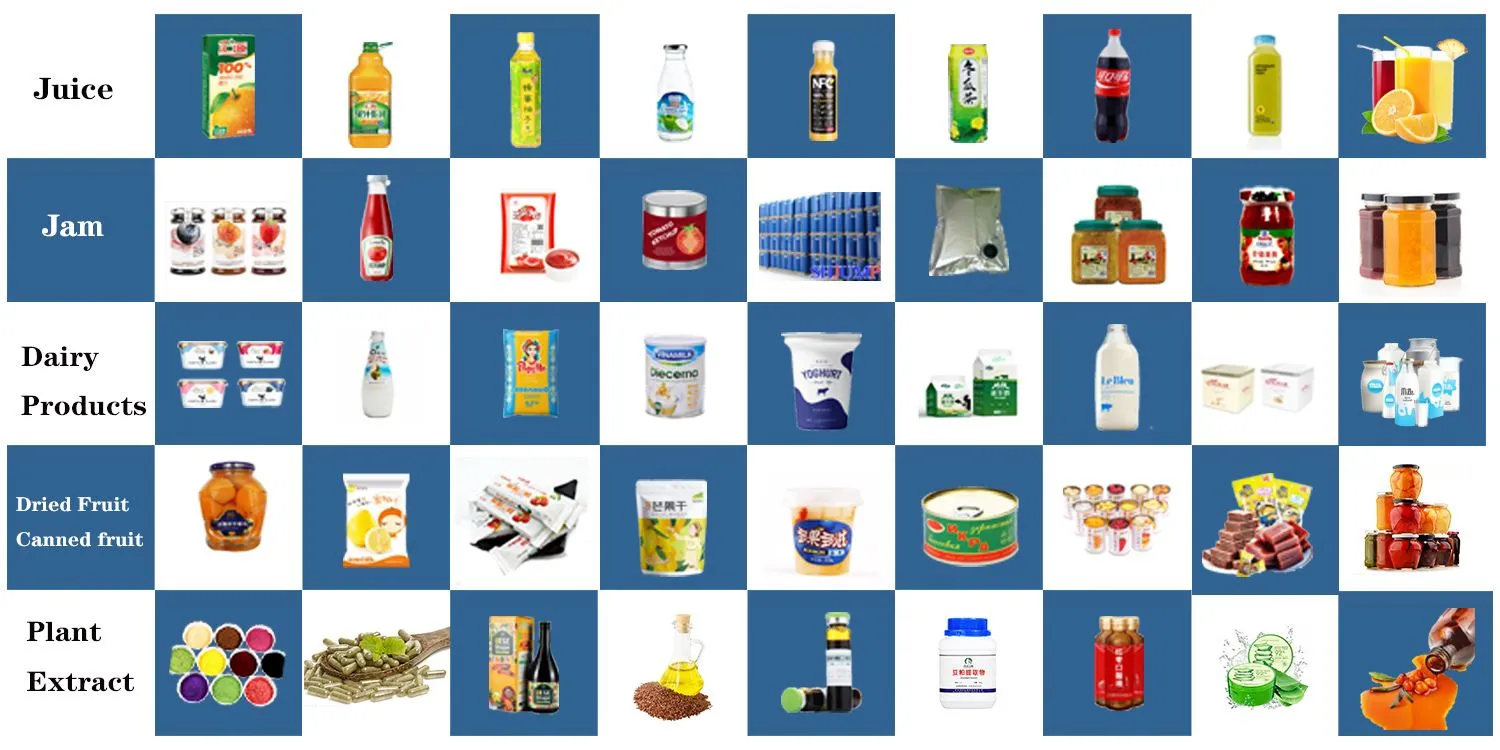 ● 4ú: ábhair táirgthe ardchaighdeáin a sholáthar le haghaidh líne próiseála torthaí agus glasraí, lena n-áirítear breiseáin bia mar einsímí, ábhair phacála cosúil le mála aiseiptigh, drumaí agus buidéil, etc.