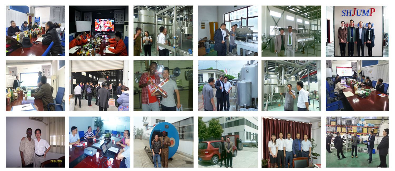 Tá Shanghai Jump Machinery & Technology Co., Ltd. (SHJUMP anseo feasta) tiomanta do theicneolaíocht tosaigh, táirge ardchaighdeáin, réiteach aonair agus seirbhís níos fearr a sholáthar do phróiseálaí bia an domhain, do sholáthraí agus do gach custaiméir eile. Tar éis beagnach 40 bliain de nuálaíocht agus féinfhorbairt, tá SHJUMP ina phríomhsholáthraí do phlandaí iomlána innealra agus innealtóireachta le haghaidh próiseála torthaí, próiseáil deochanna sú agus araile ó A go Z. Dearadh, monarú agus monarú, suiteáil, coimisiúnú mar chomh maith leis an oiliúint theicniúil agus tar éis díolacháin a láimhseáil go léir ag SHJUMP.